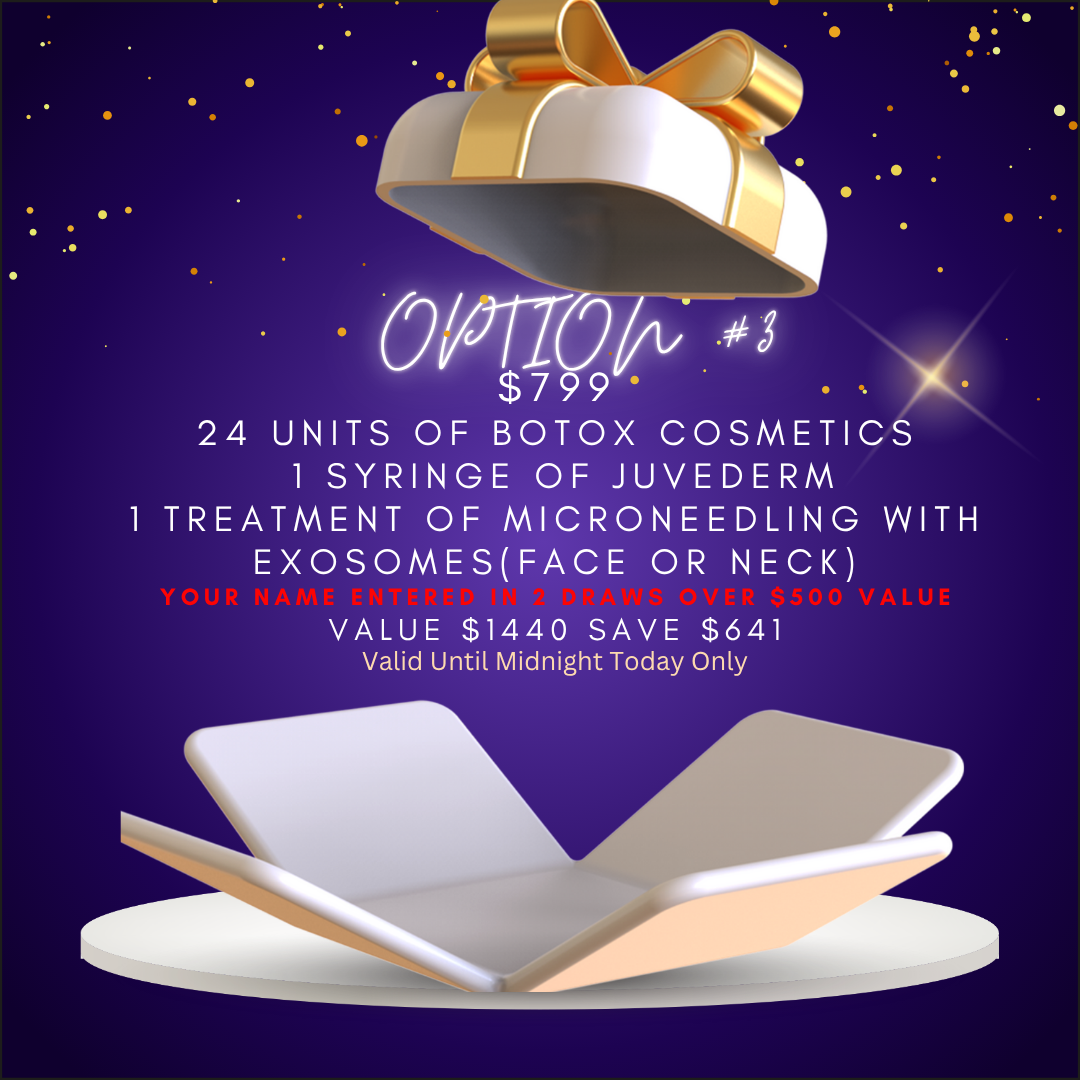 Categories: Select a Category Microneedling Alastin Skinceuticals Omnilux Technology National Botox Day Z0 Skin Health Skin Resurfacing (Microneedling with Radiofrequency) Skin Rejuvenation with Laser IPL Treatment for Pigmentation Teeth Whitening Skin Tightening Facial Services Laser Hair Removal Biophora Skin Medica Vivier Pharma Inc TIZO Dermalogica Latisse Gift Card National Botox Day Option #3 ~24 units of Botox with 1 Juvederm with 1 Session of Microneedling Sale Price: CA$799.00 Original Price: CA$1,440.00 Sale Option #2 National Botox Day 150 units of Botox (plus See below:) Sale Price: CA$999.00 Original Price: CA$1,825.00 Sale National Botox Day Option #1 Sale Price: CA$600.00 Original Price: CA$1,025.00 Sale
